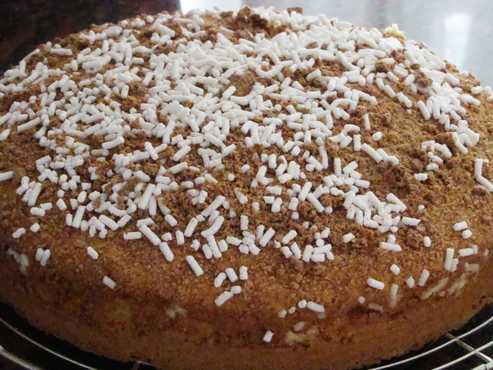 Se si vuole si può aggiungere, per decorare e per dare un gusto leggermente diverso alla torta, sulla superficie alcuni amaretti sbriciolati mescolati alla granella di zucchero. L’unica accortezza è di mettere questa copertura in un unico strato e non esagerare, perché altrimenti il composto non attaccherebbe.